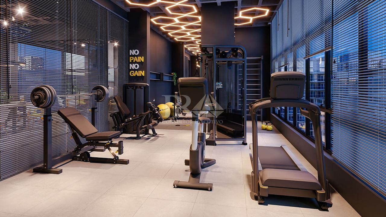Um espaço moderno para cuidar da saúde e manter a rotina de exercícios com conforto, podendo inclusive apreciar o pôr do sol enquanto se exercita.