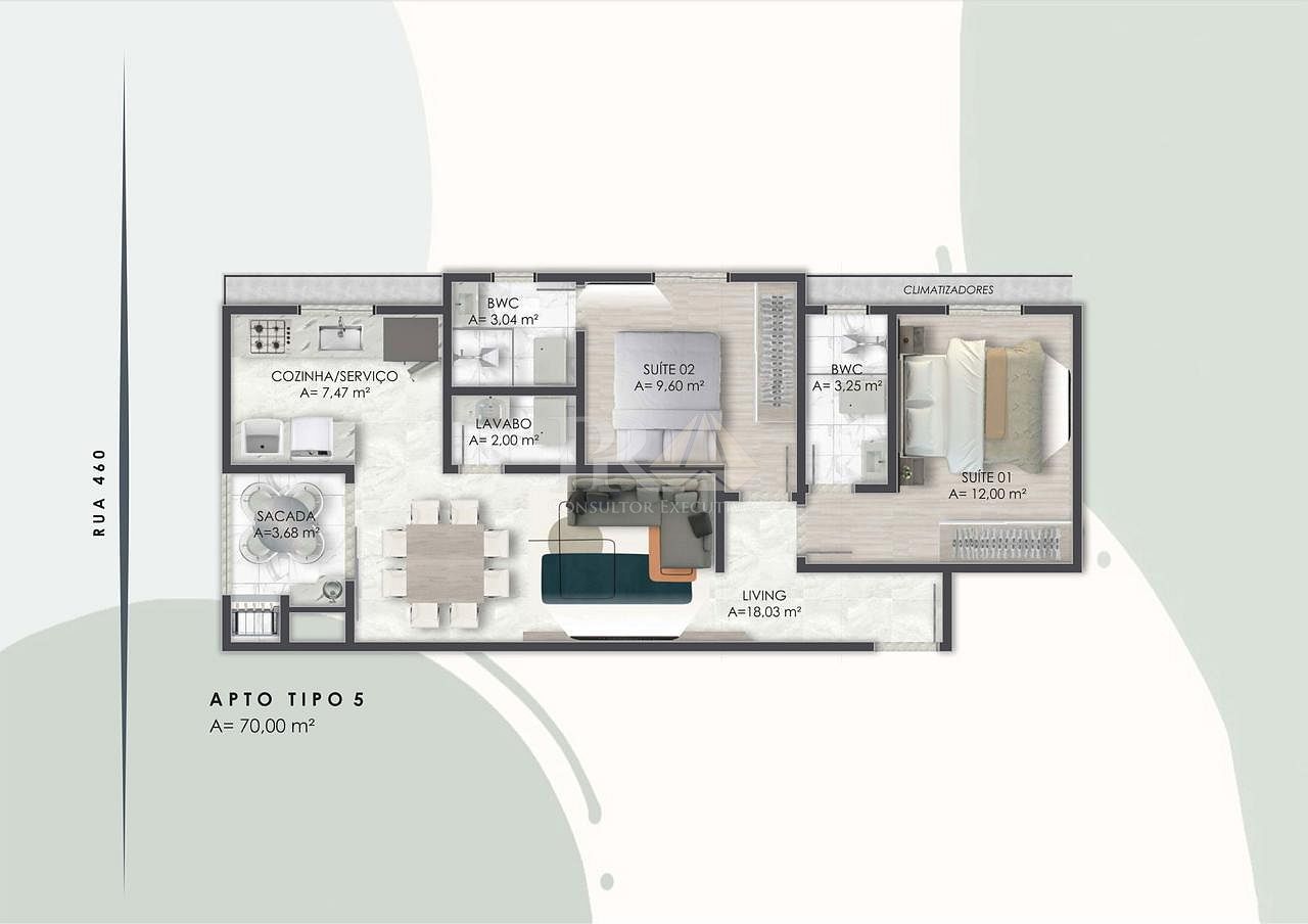 70,00 m² de área privativa
