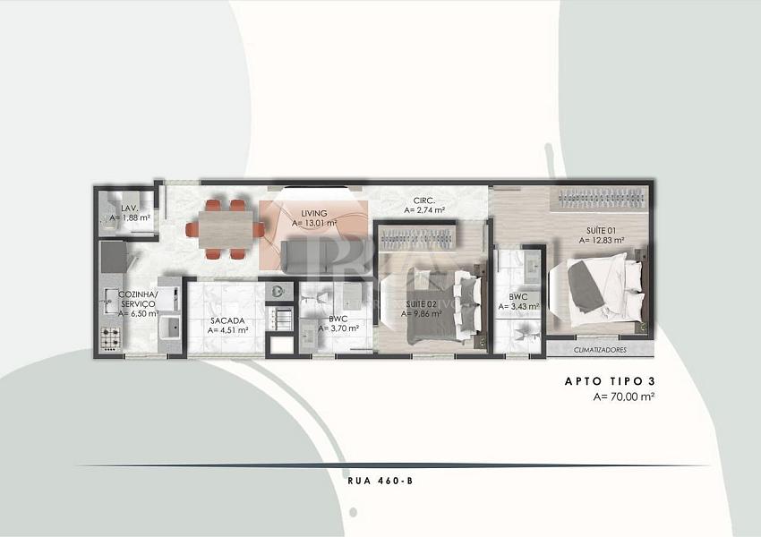 2 dormitórios (2 suítes)