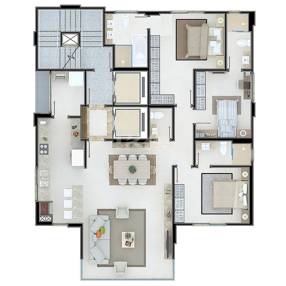 Com apenas um apartamento por andar, o edifício proporciona alto nível de privacidade. As unidades contam com plantas amplas e bem distribuídas, geralmente com três suítes, living integrado e excelente iluminação natural, atendendo perfeitamente quem busca espaço e conforto.