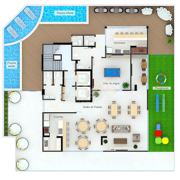 A área de lazer oferece ambientes planejados para todas as idades, incluindo piscina, salão de festas, academia, espaço gourmet, sauna, spa, playground e sala de jogos. Tudo pensado para proporcionar momentos de lazer, bem-estar e convivência sem sair de casa.