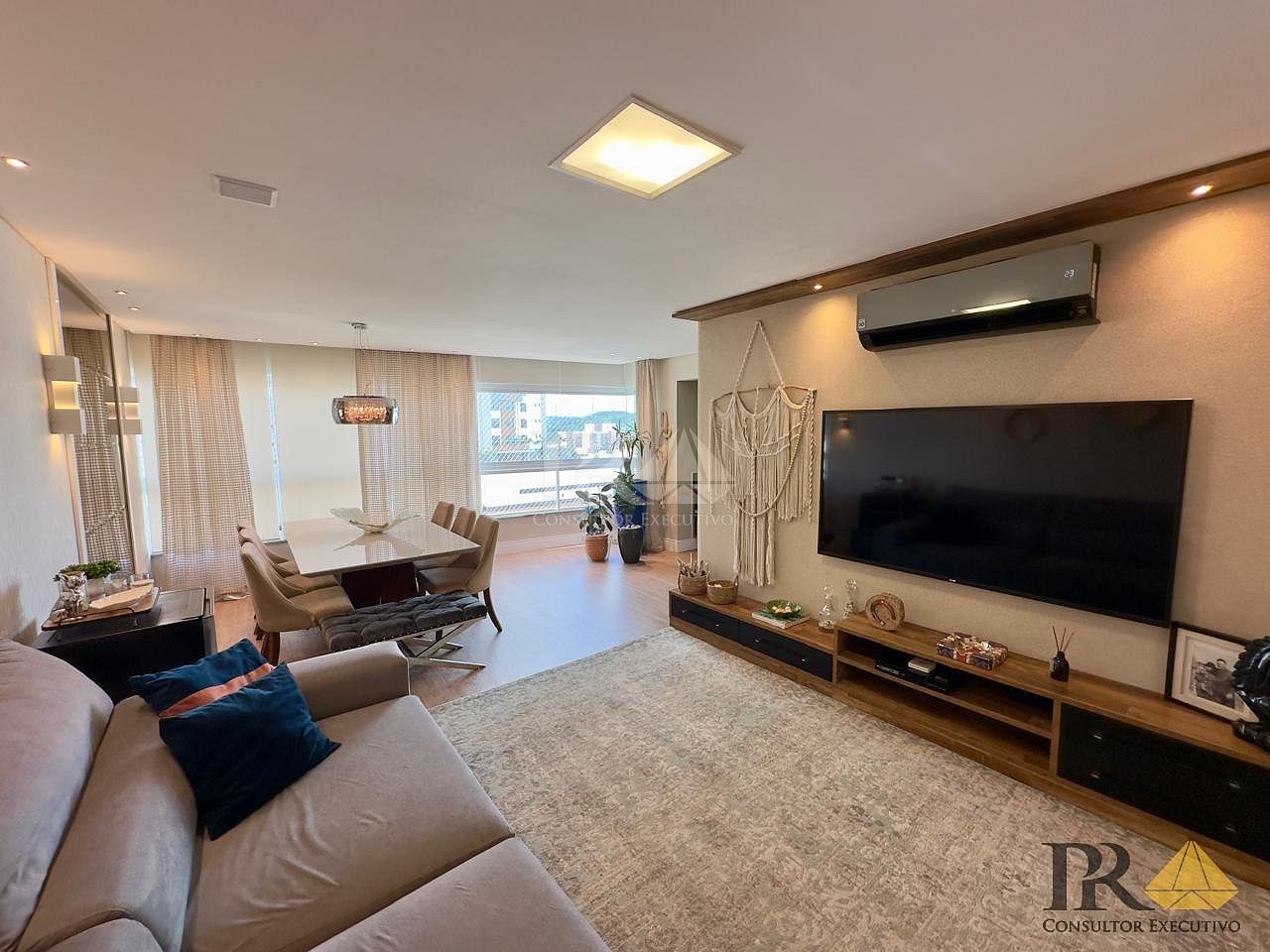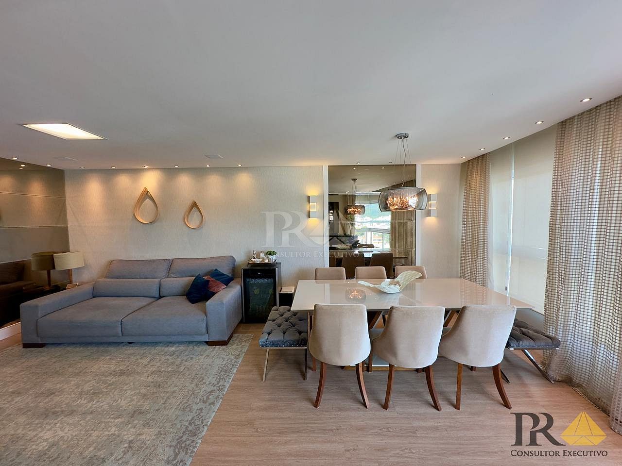 * **Sala de estar e jantar integradas**, criando um ambiente amplo, perfeito para receber visitas com conforto e elegância.