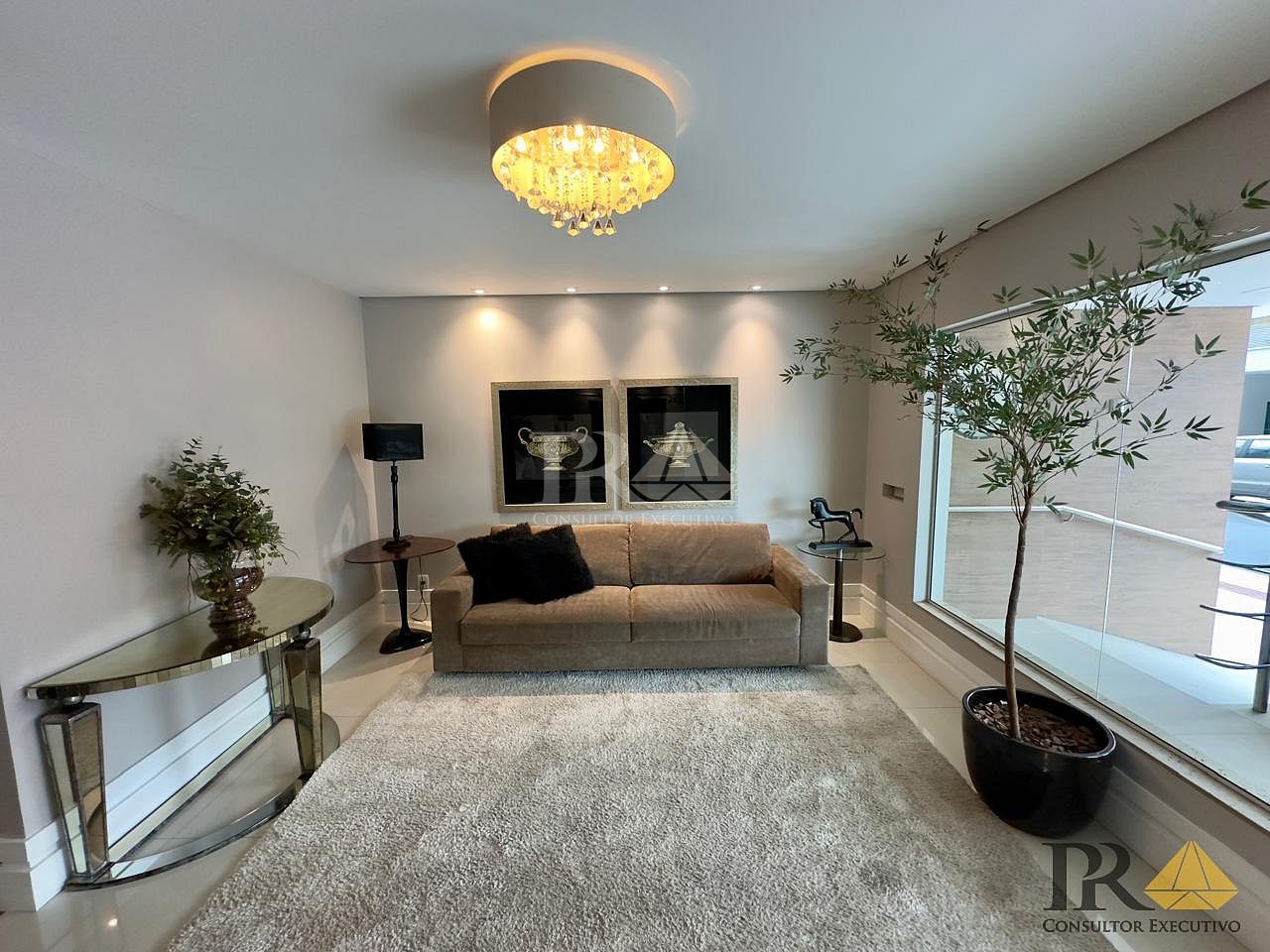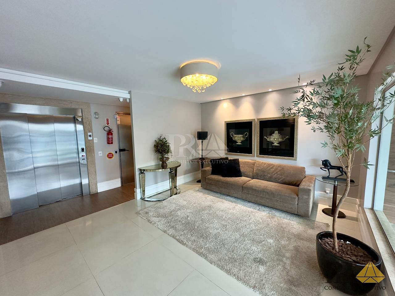 * **Hall de entrada decorado e mobiliado**, transmitindo elegância desde o primeiro passo