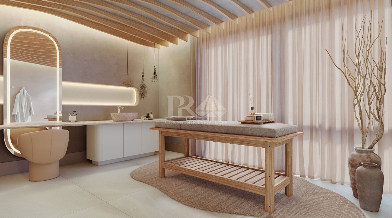 O projeto também incorpora soluções inteligentes e sustentáveis, como sistema de reaproveitamento de água pluvial, aliando responsabilidade ambiental ao alto padrão construtivo.