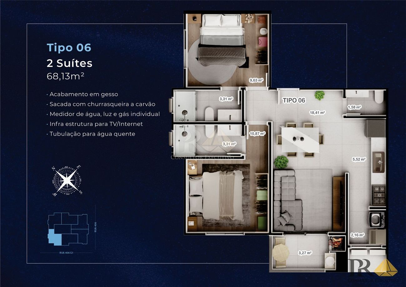 • 02 Dormitórios sendo 02 Suítes