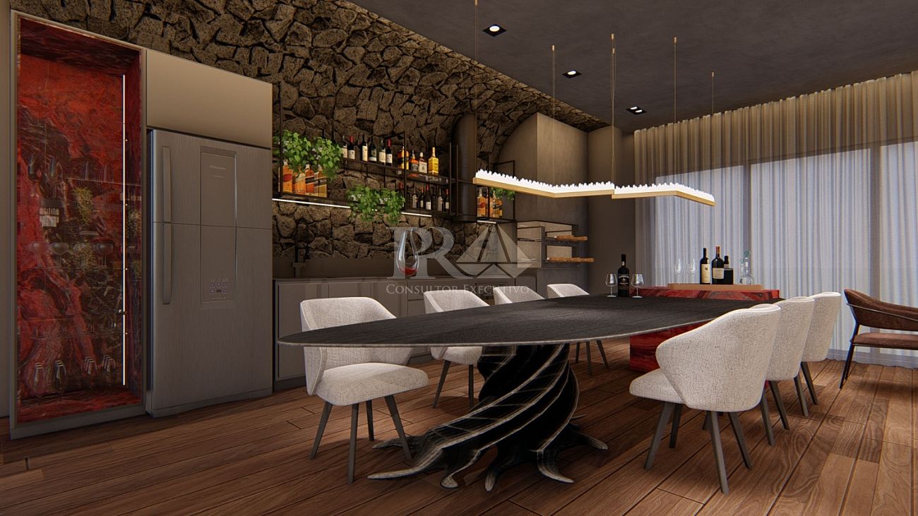 O Pericó Residence conta com um lazer sofisticado e completo, incluindo uma área subterrânea dedicada exclusivamente ao ritual do vinho — um diferencial único e marcante.