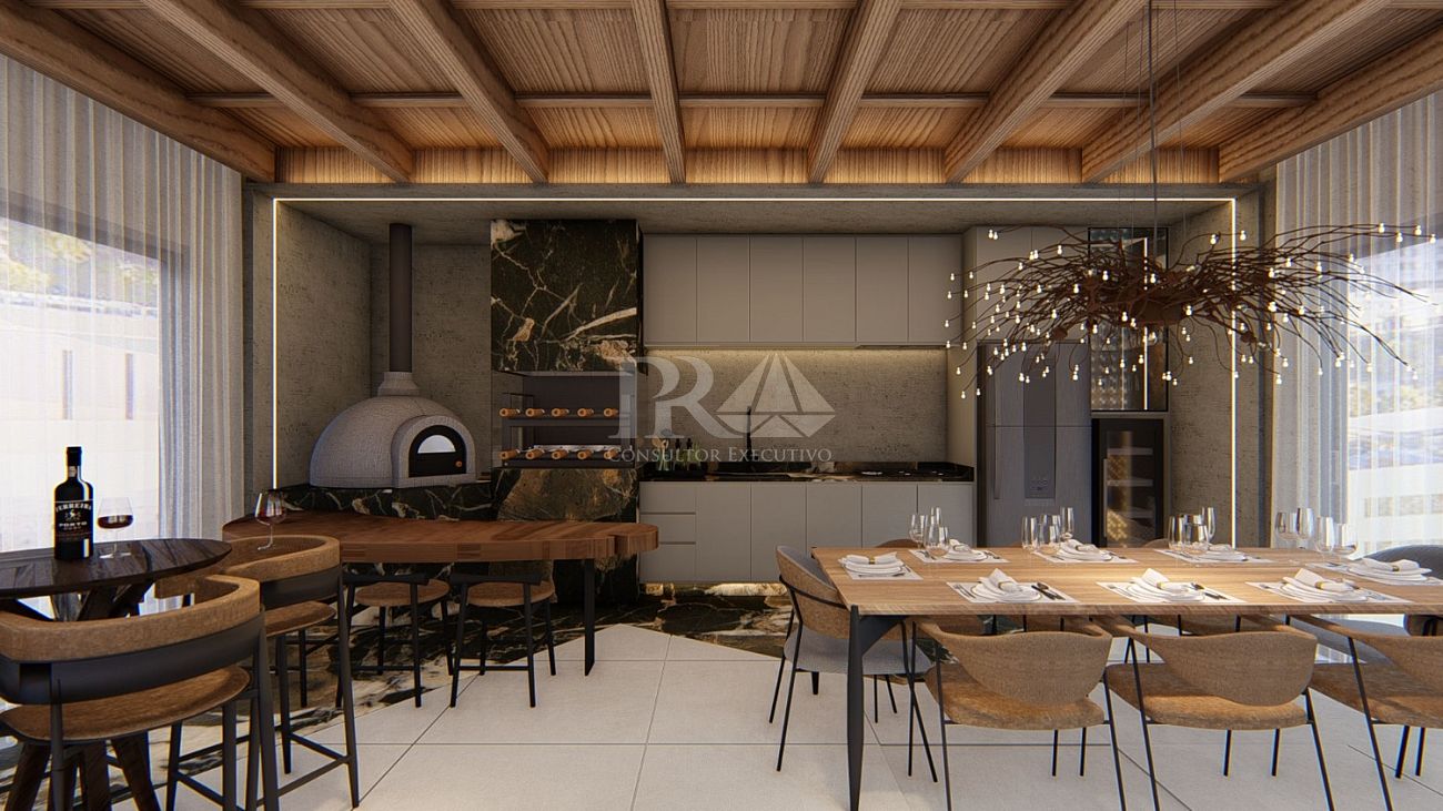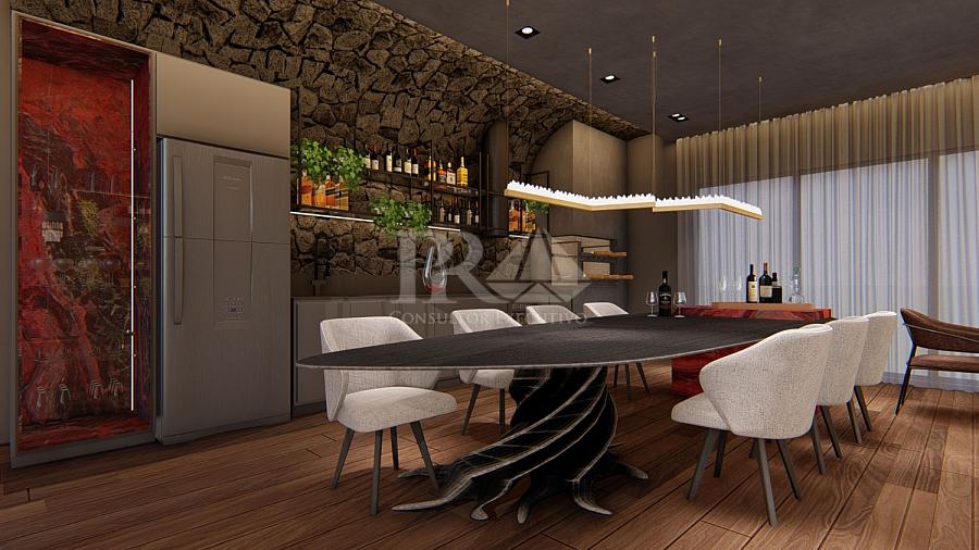 O Pericó Residence conta com um lazer sofisticado e completo, incluindo uma área subterrânea dedicada exclusivamente ao ritual do vinho — um diferencial único e marcante.
