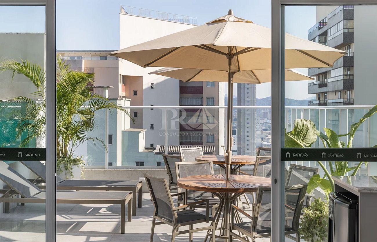 No rooftop, a infraestrutura de lazer é um convite ao relaxamento, com piscina, salão de festas com espaço gourmet e sala de TV, terraço, lounge coberto e espaço fitness. O San Telmo é ideal para quem deseja viver perto da praia sem abrir mão da praticidade urbana.